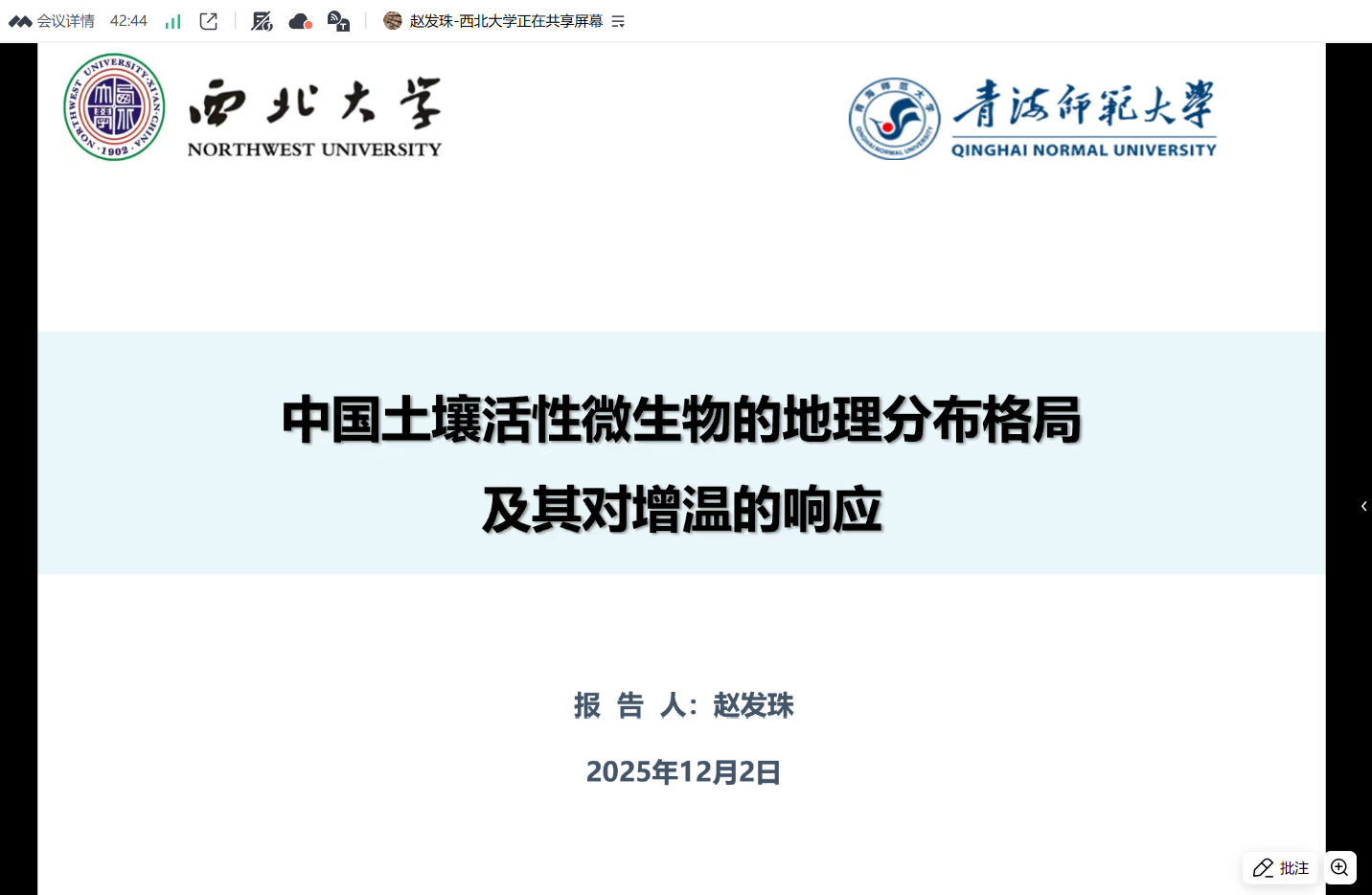 赵发珠教授应青海省青藏高原生物多样性形成机制与综合利用重点实验室邀请,在线上作了题为《中国土壤活性微生物的地理分布格局及其对增温的响应》的学术讲座。本次讲座由开云体育