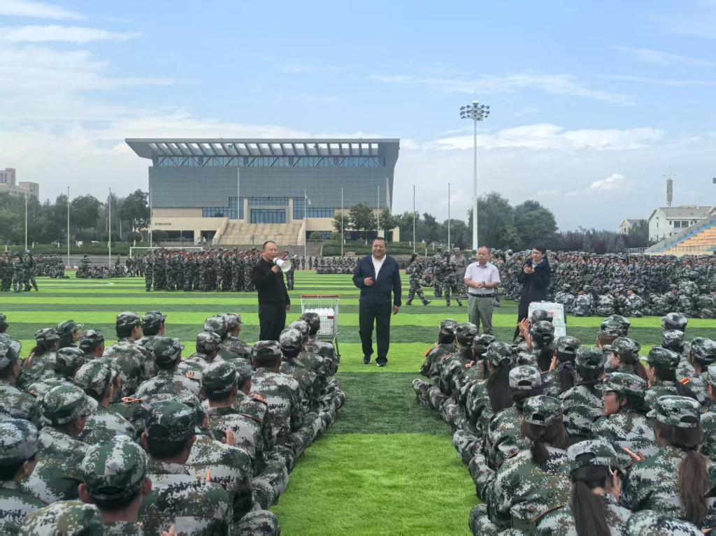 领导和老师们与参训新生亲切交流,细致询问同学们的军训感受、生活适应情况以及遇到的困难。对大家在训练中展现出的吃苦耐劳、意志坚定的精神面貌予以高度肯定。鼓励同学们在军训期间以军人标准严格要求自己,磨砺自我、锤炼品格,不断增强纪律意识和团队协作能力,为今后的学习与生活奠定坚实基础。